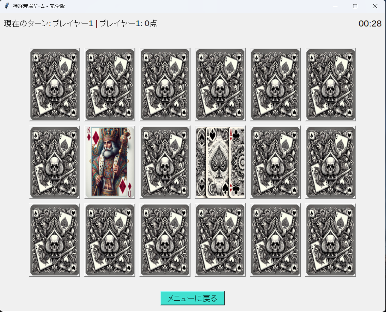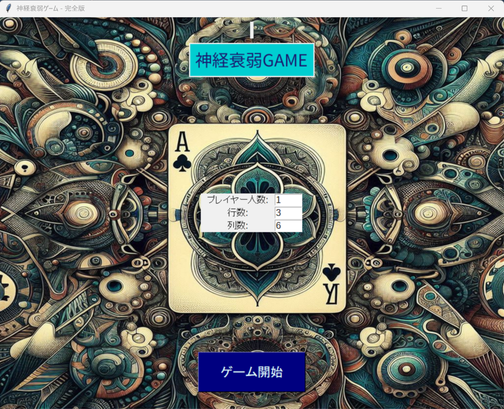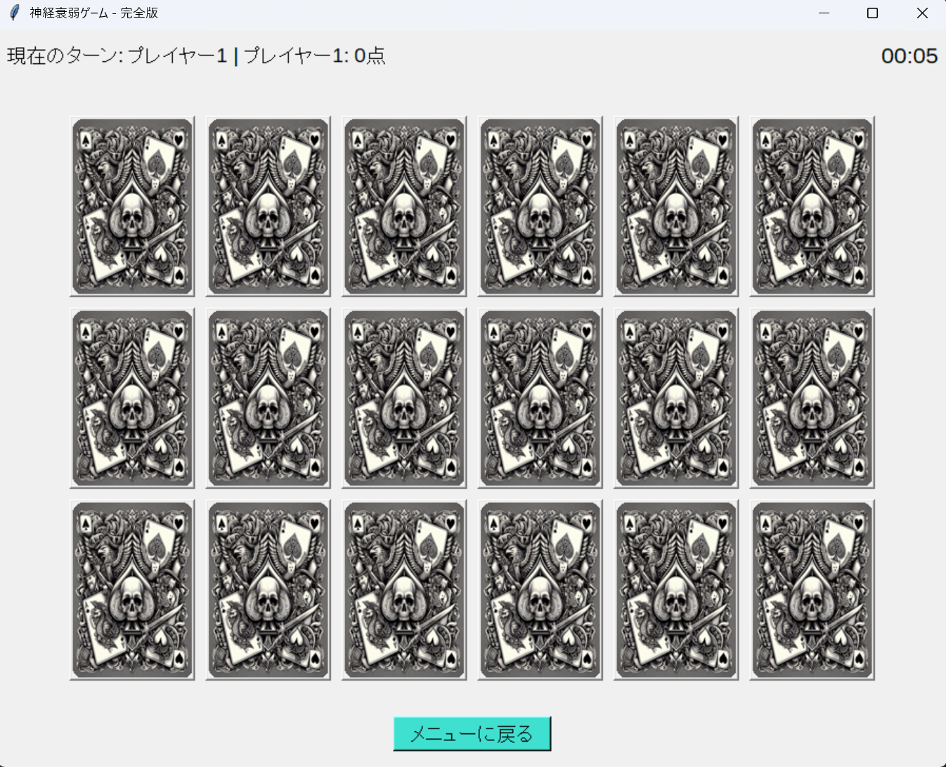 - ゲーム開始: 「ゲーム開始」ボタンを押すと、すべてのカードが裏返しで表示されます。